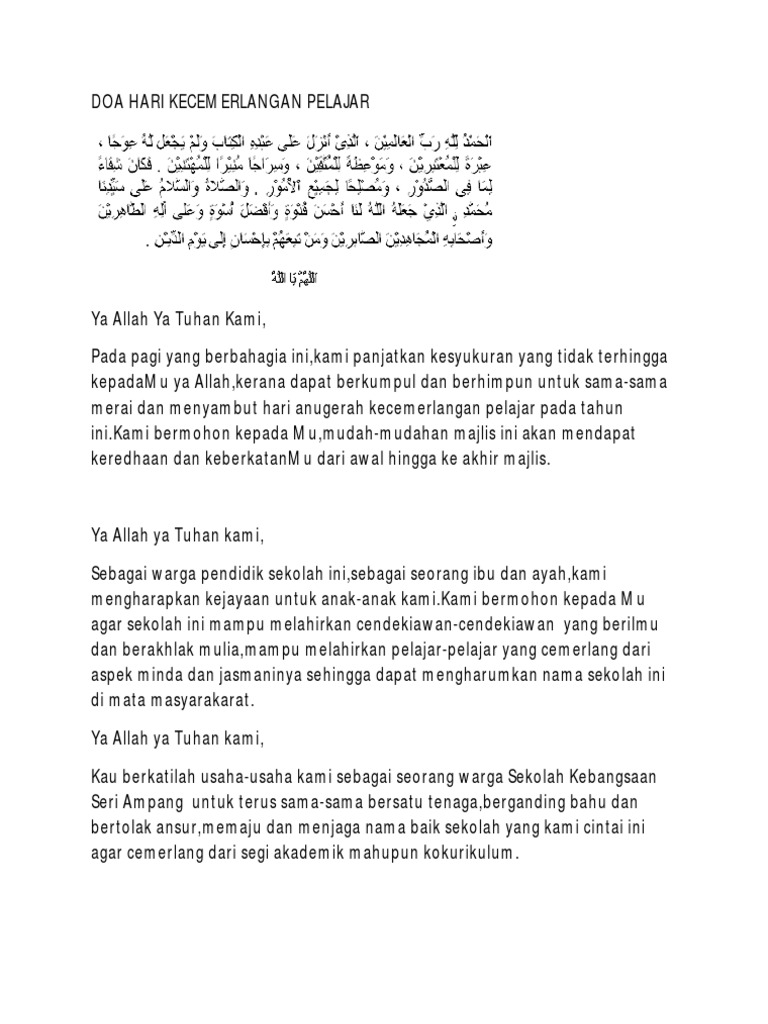 Doa Sempena Hari Anugerah Kecemerlangan Pdf